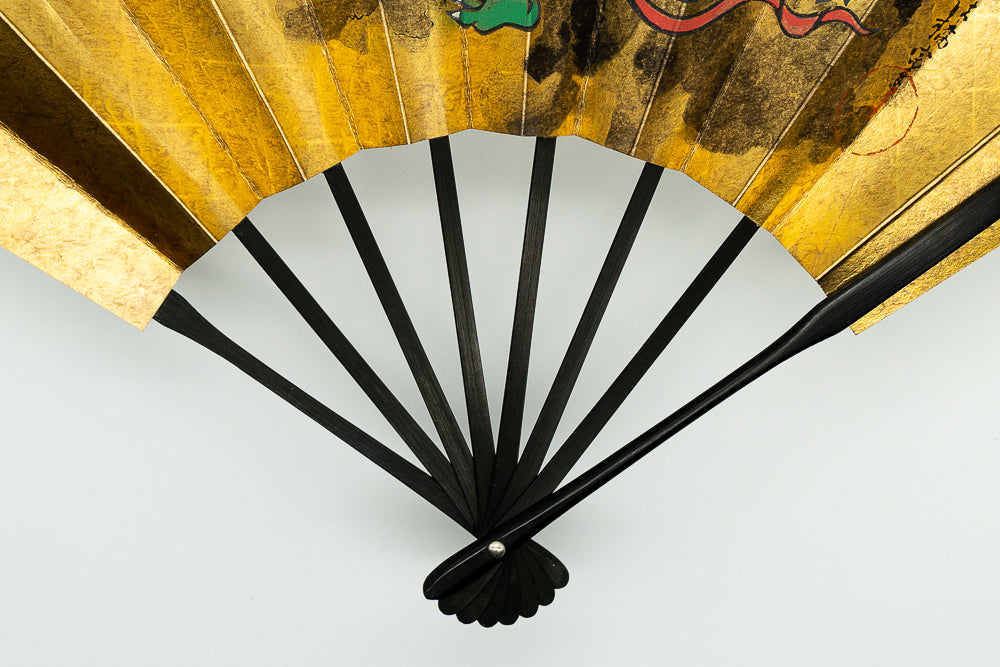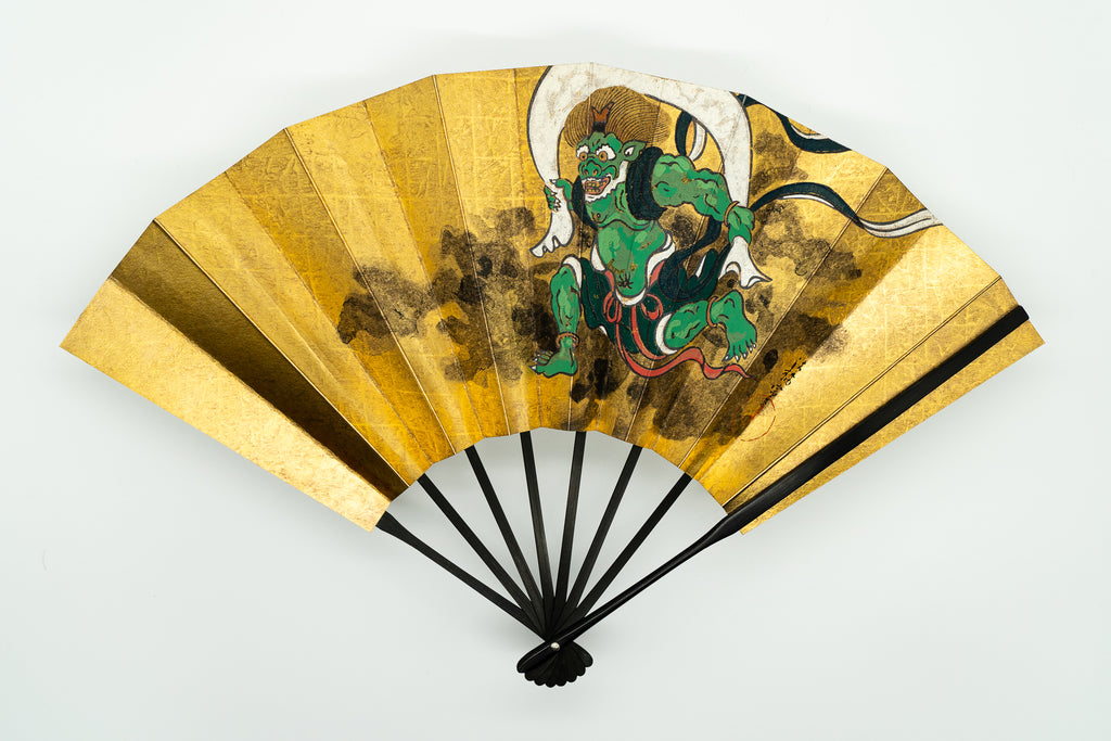 金地の扇面に風神が描かれています。飾り場所を選ばず通年ご利用いただけます。