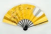 ゴールド地の扇面に片面には萩と月、片面には南天が手描きで描かれています。落ち着いた色調でシックな雰囲気です。季節に合わせて両面お使いいただけます。