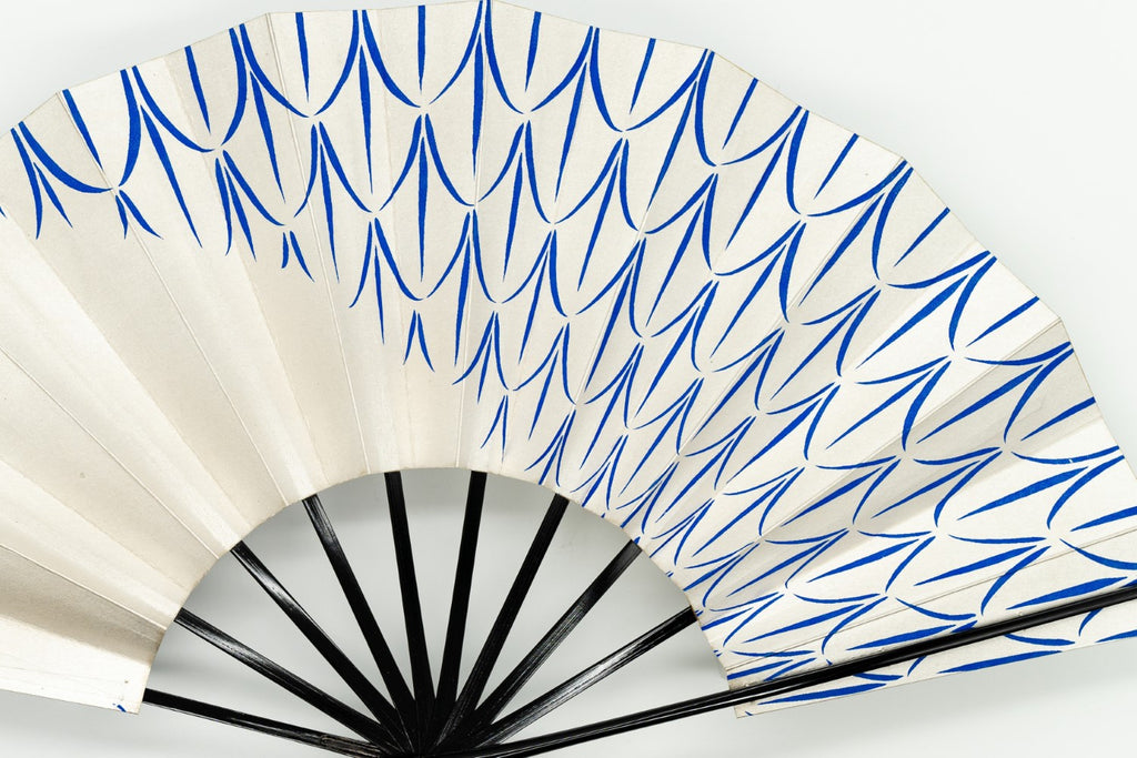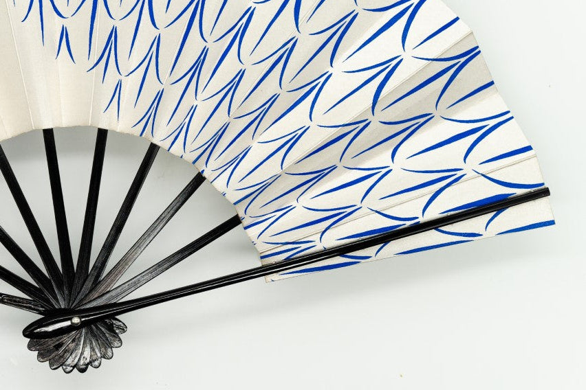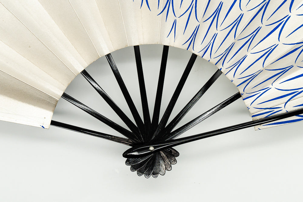 銀ハキ地に青色で鶴の羽をあしらっています。日本では鶴は長寿吉兆の象徴で古くから非常に愛され親しまれている吉祥文様の一つです。