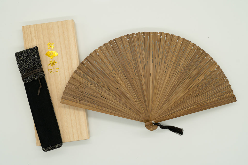 セットの扇子ケース付、内側が布張りの高級桐箱入りで改まった贈り物や海外の方へのプレゼントにも最適です。