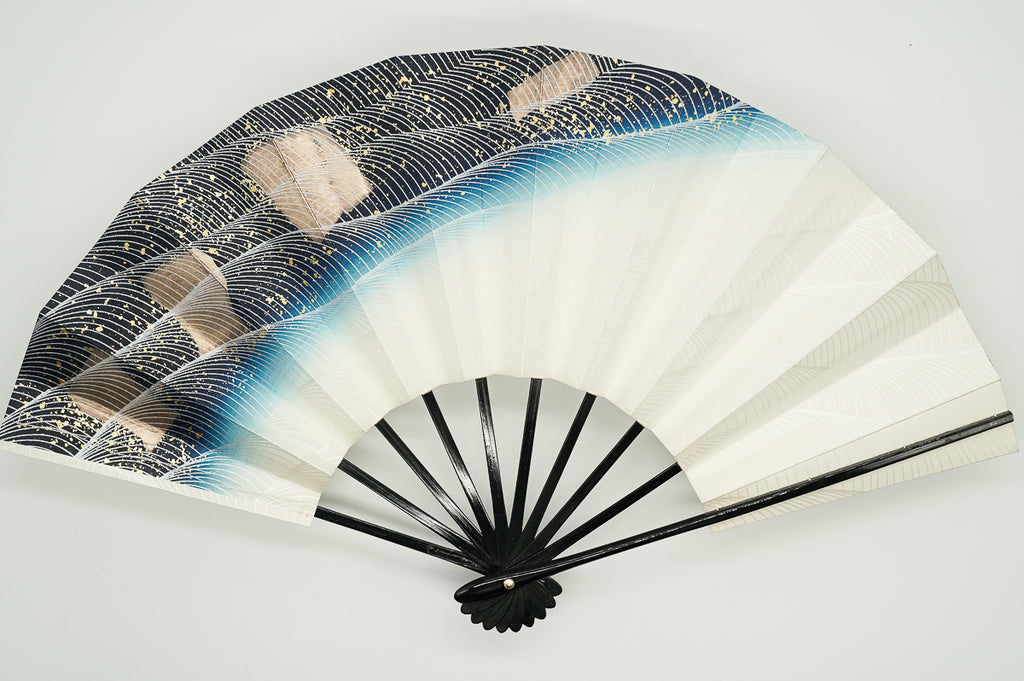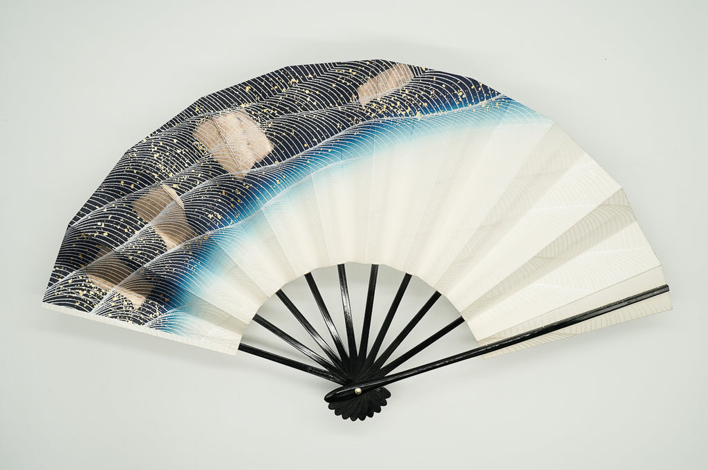 パール地に銀の細かな流水模様を描き金二色の箔細工をあしらっています。