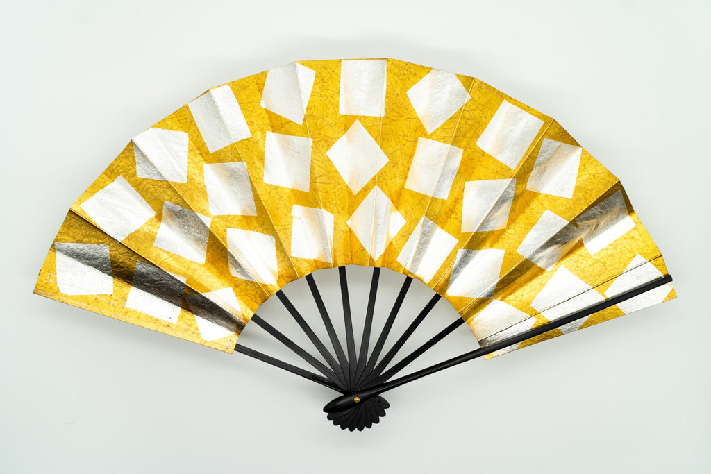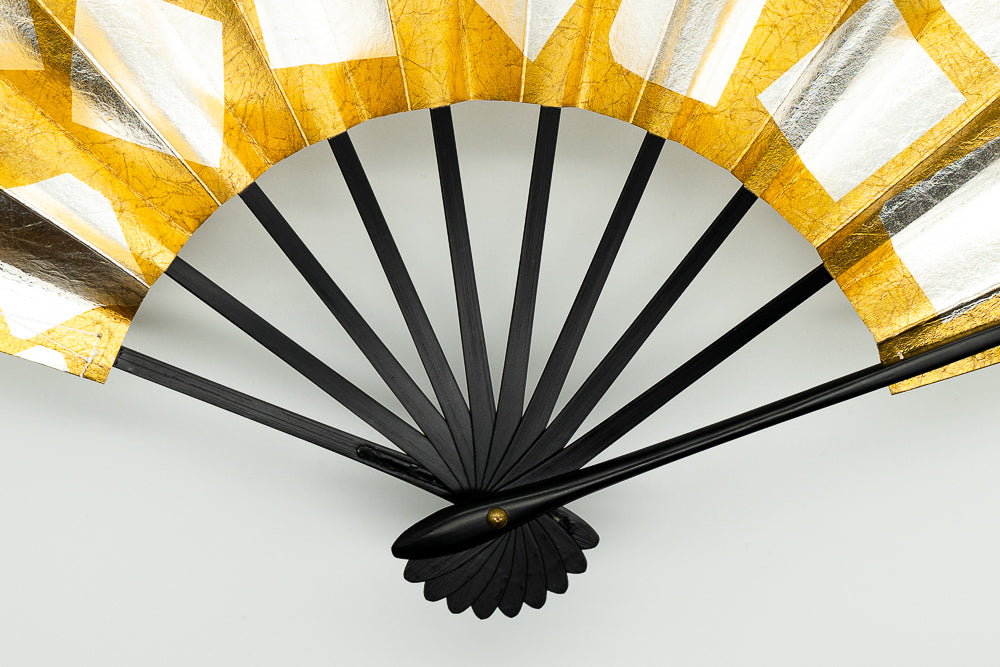 【一点もの・ビンテージ品】金箔を手で揉みこみ、扇面に箔押し加工を施しております。一面に銀箔を散らしており、豪華な一品です。