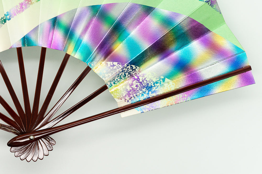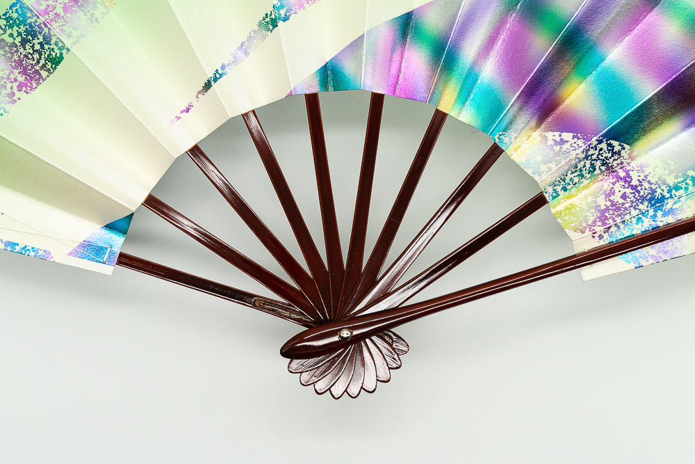 オーロラ箔を使用して虹を表現しました。タメ塗りの骨と調和して上品な雰囲気に仕上がっています。写真映えもする一品です。