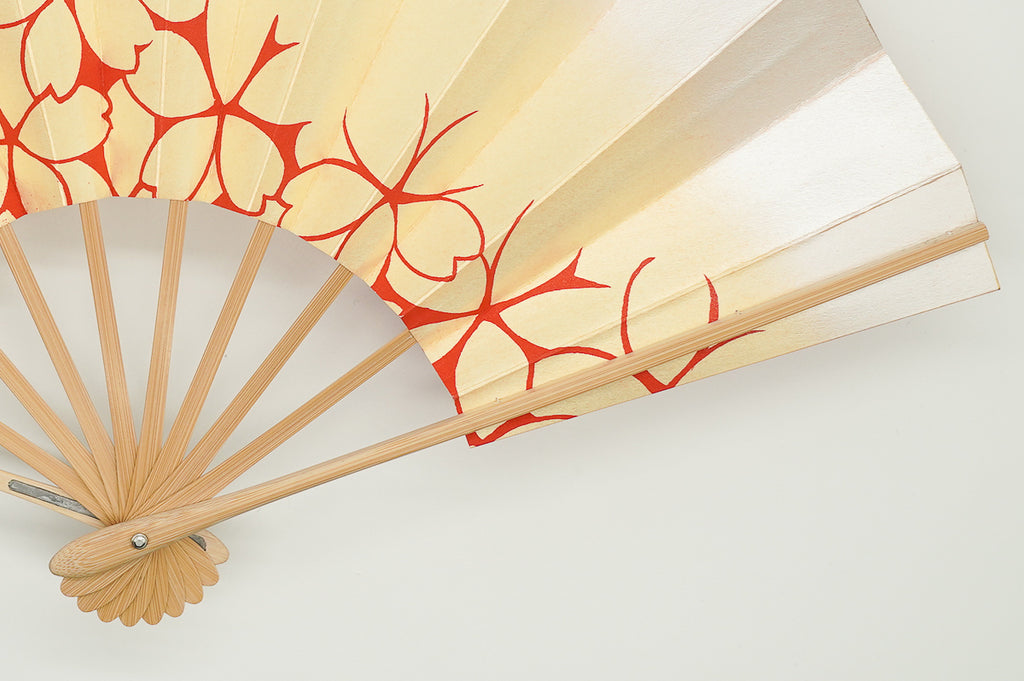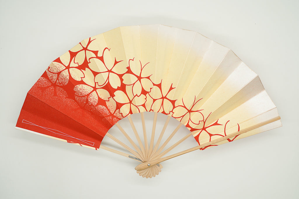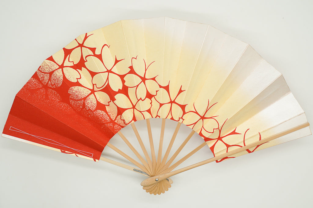 【万葉オリジナル品】赤とゴールドで桜を描いています。褄にシルバーのぼかしが入っています。
