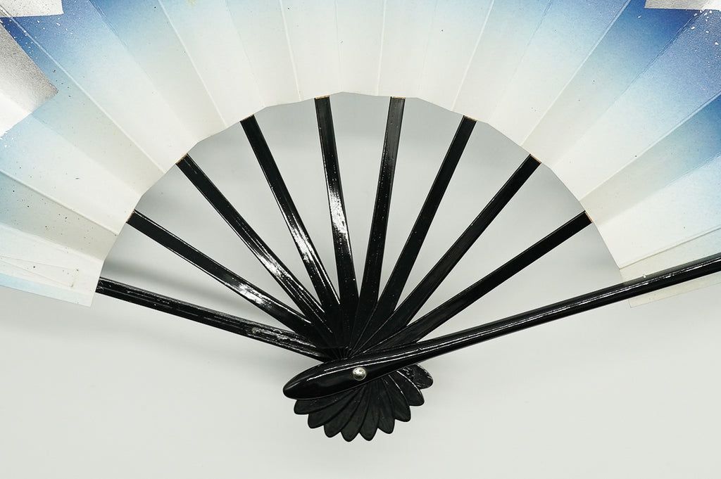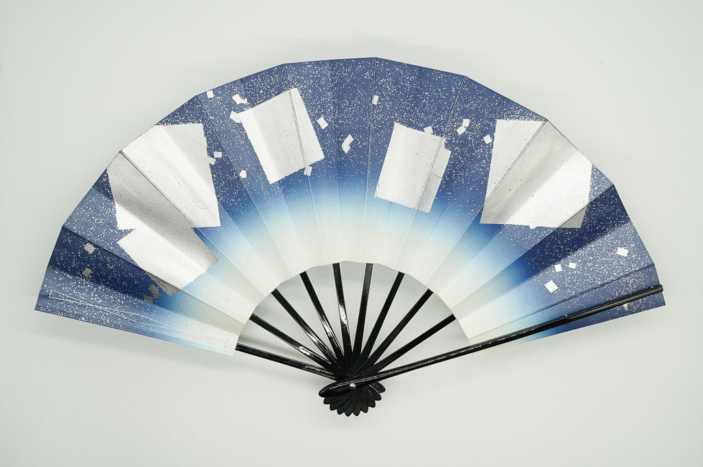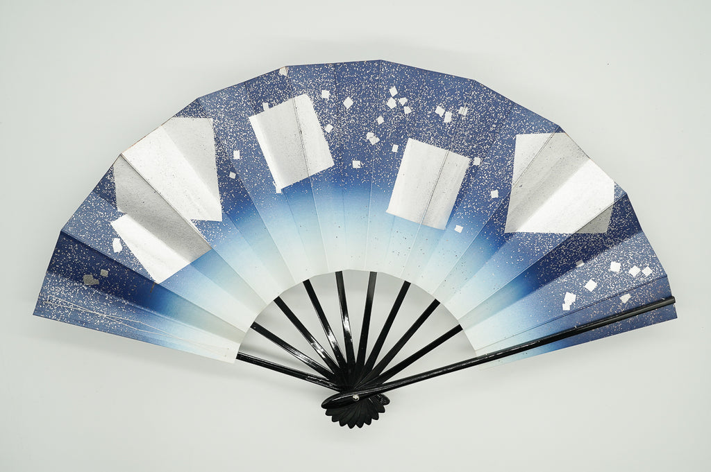 紺ぼかしに銀の色紙をあしらっています。明るく華やかな雰囲気です。